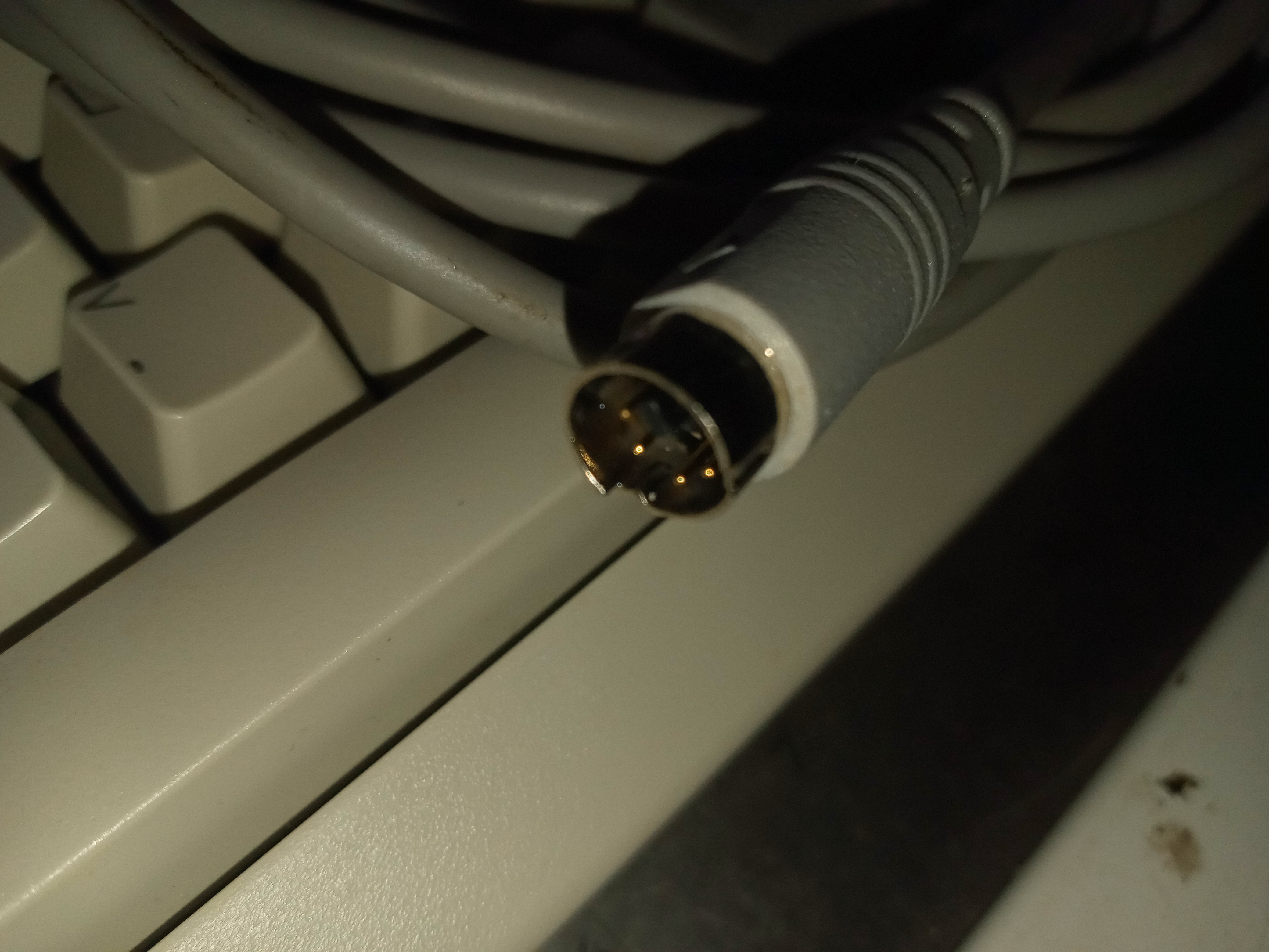 The vintage Hi-Tek brand AT keyboard finally arrived, stuck in USPS limbo, originally supposed to be delivered by the 11th of December. Anyway, though it does seem to be mechanically close to the 800's Hi-Tek keyboard, the white plungers are smaller and rectangular, not square, like the 800's. I also don't see any leaf-spring contacts inside the plunger, like the 800's Hi-Tek keyboard. I think it might have a membrane inside actually, it feels more like my 1200XL's Mitsumi keyboard. Which is also a good thing, in as much as I have a very nice new, vintage keyboard for my PC, but no serviceable parts for my 800 Hi-Tek. So it's time to take measurements of the 800 keyboard and compare to those given to me from the Oric Atmos's Hi-tek keyboard, of which the plungers and leaf spring contacts at least looks just like the 800's. Anyway, to my surprise, what I thought was going to be a well-used keyboard in not-so-perfect shape looks like NOS and is in mint condition. It could have been refurbished or just very well cleaned, but they did it right, if so, it's totally clean in-between and under the keys and everywhere.